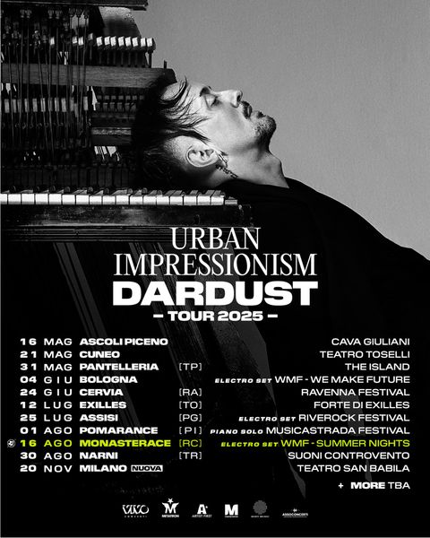 Il 16 agosto 2025, Dardust arriva a Monasterace (RC) con il suo tour europeo "Urban Impressionism". Il pianista italiano, uno dei più influenti della sua generazione, si esibirà in concerto con un electro set innovativo che fonde musica, architettura e arti visive. Un’occasione imperdibile per vivere una performance dal vivo unica, nel cuore della Calabria.